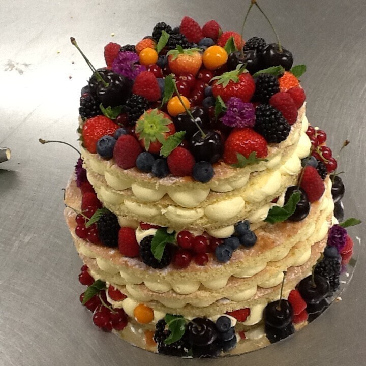 Een "naked cake' met echte kleurrijke bloemen en vers fruit, smaak naar wens. Faked staat natuurlijk in dit geval voor namaak, maar er is er geen een hetzelfde bij ons de deur uit gegaan. Dus allemaal unieke stukken.Wel "Naked". Het klonk alleen leuk!